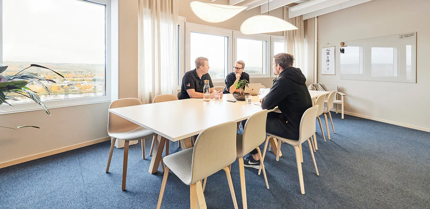 Vi finns på två adresser i Jönköping - Östra Storgatan 9 och i Munksjötornet - där vi bedriver coworking och även erbjuder riktigt schyssta konferensrum. Hos oss kan du boka mötesrum i olika storlekar från för 2 personer upp till 12 personer och vi kan såklart hjälpa dig med att beställa och leverera fika och lunch till ditt möte.