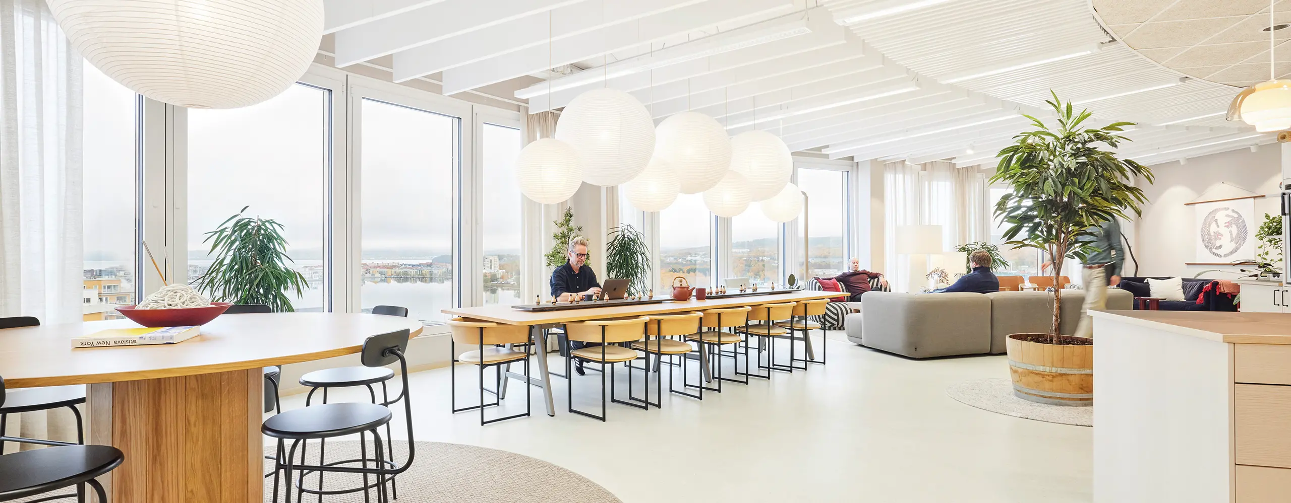 - Vår huvudverksamhet, coworking, går ut på att ha fler människor som delar på mindre yta och resurser för att minska klimatavtrycket. Vi källsorterar och väljer material samt produkter av hög kvalité som håller i längden.