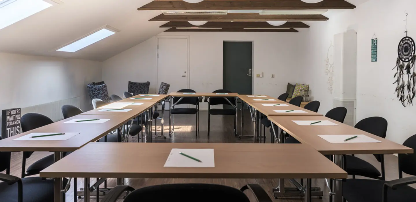 - Alla våra lokaler är utrustade med projektor, whiteboard och blädderblock